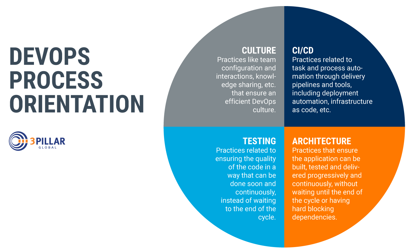 We believe there are four fundamental areas that organizations should focus on when adopting DevOps. They are culture and organization, CI/CD, testing, and architecture. We see many organizations that focus primarily on CI/CD and automation, but without the right culture, architecture, and testing practices, these organizations will never get the full benefits of DevOps.